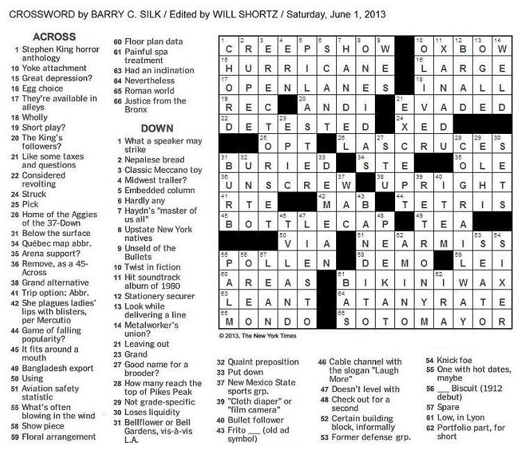 The new york times crossword in gothic: 06.17.13 — pop-up. Am new york crossword puzzle. Crosswords completing clue nytimes